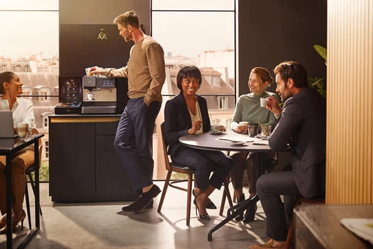 Además del estímulo natural que trae el aroma y el sabor del café, la cafeína en su justa y adecuada medida logra aumentar los niveles de energía y puede ayudar al rendimiento en un espacio de trabajo. Aparte, los empleados amantes del buen café siempre agradecerán la experiencia que se les brinda de degustar un buen café (en comparación con los que salen de las máquinas vending automáticas) sin salir de la oficina y en un entorno de lo más cálido y agradable.