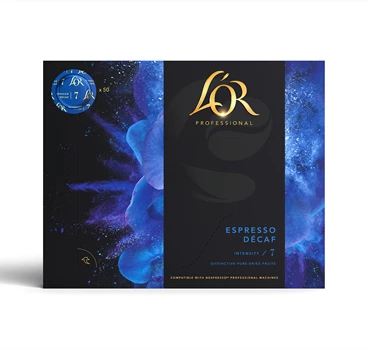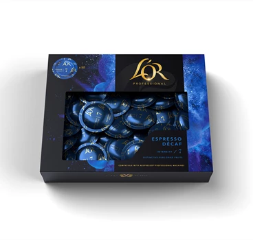 Distintivo, Puro, Frutos secos. Una mezcla elaborada con granos cuidadosamente descafeinados que brinda un distintivo espresso puro con notas de frutos secos.